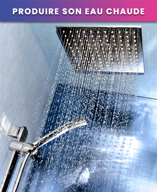 Produisez efficacement, durablement et en quantité importante votre propre eau chaude sanitaire via un système d'auto-consammation alimenté par le rayonnement solaire et permettant d'accumuler de l'eau déja préchauffée dans votre réservoire.